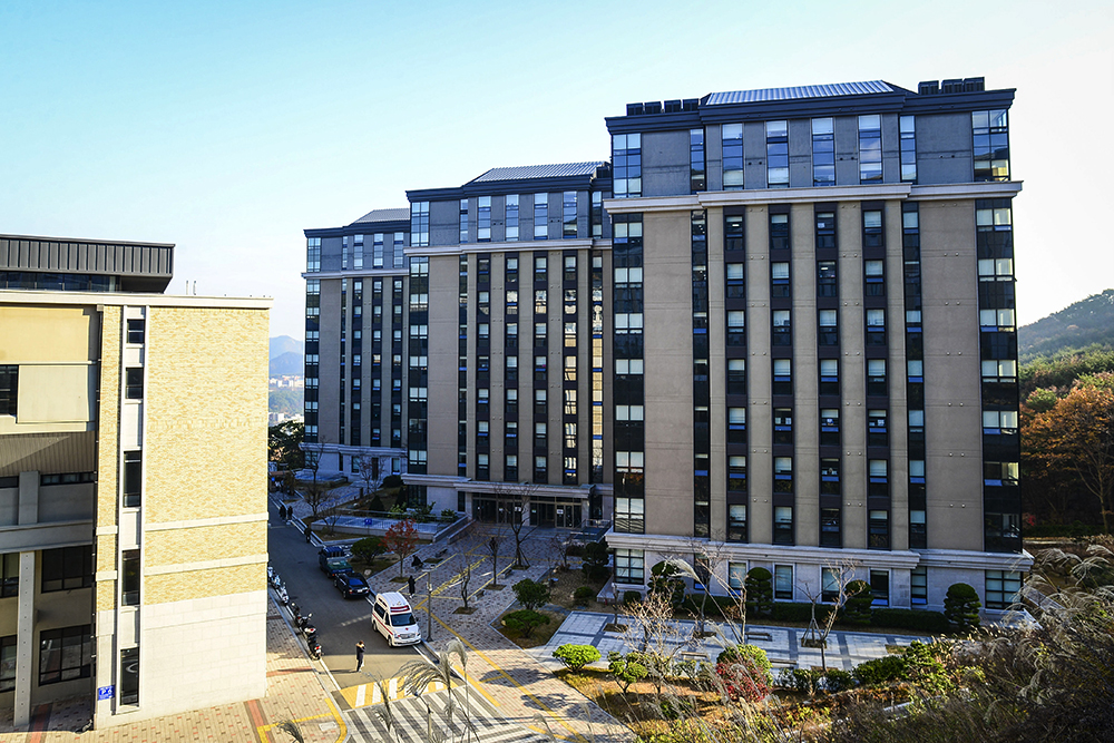 학생기숙사(교내)는 현대식 건물 3개 동으로 이루어져 있으며 건물 내에서는 카드인식 없이는 이용할 수 없도록 철저한 보안 관리 시스템을 운영하고 있습니다.